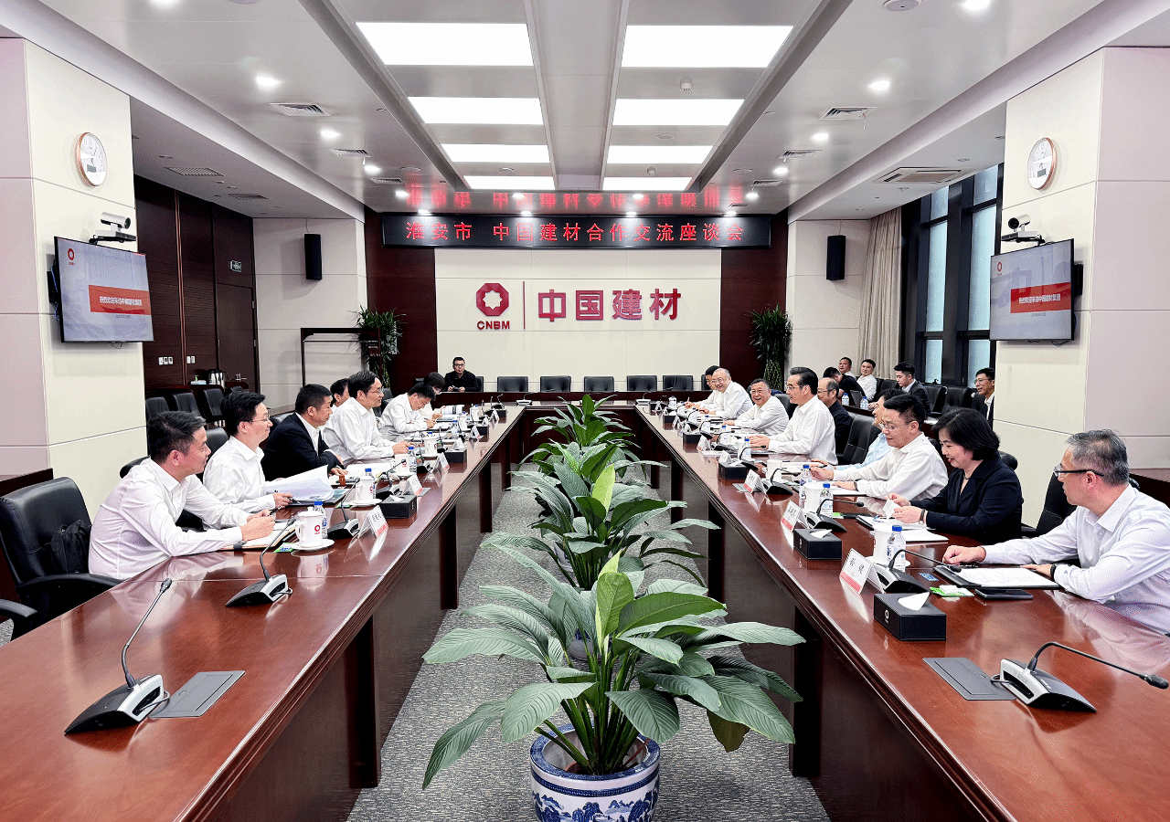 9月23日,中国建材集团党委书记、董事长周育先在集团总部会见了淮安市委书记、市人大常委会主任史志军一行,双方就深化务实合作,推动互利共赢进行了座谈交流。淮安市委常委、常务副市长林小明,南京市一级巡视员、淮安市副市长许宏;中国建材股份党委常委、中国巨石董事长刘燕,中国建材股份副总裁蔡国斌参加会见。